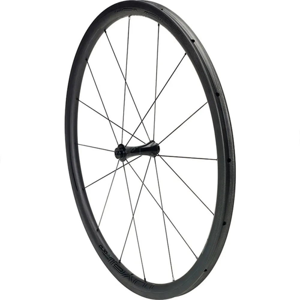 La rueda delantera tubular Roval CLX 32 es una de las ruedas de carbono más livianas jamás fabricadas, pero esto no se produce a expensas del rendimiento fundamental. En cambio, la minuciosa ingeniería y las pruebas de laboratorio nos ayudaron a lograr una rueda de 490 gramos que es lo suficientemente resistente para las carreras de ciclocross, pero lo suficientemente ligera para las demandas de un escalador de GC. La baja inercia y la gran rigidez ayudan a que la rueda acelere y cambie de dirección en un centavo. Tampoco escatimamos en beneficios aerodinámicos, a pesar del bajo perfil de la llanta. El CLX 32 fue diseñado en CFD alrededor de una forma de neumático de 26 mm de ancho y pulido en nuestro propio Win Tunnel, para ser tan aerodinámico como algunas llantas casi el doble de su profundidad. Mientras tanto, los bujes aerodinámicos Roval y los cojinetes CeramicSpeed completan el conjunto de acoplamiento rápido. Verdaderamente, el CLX 32 marca el comienzo de una nueva era de ruedas de carretera de rendimiento ligero.